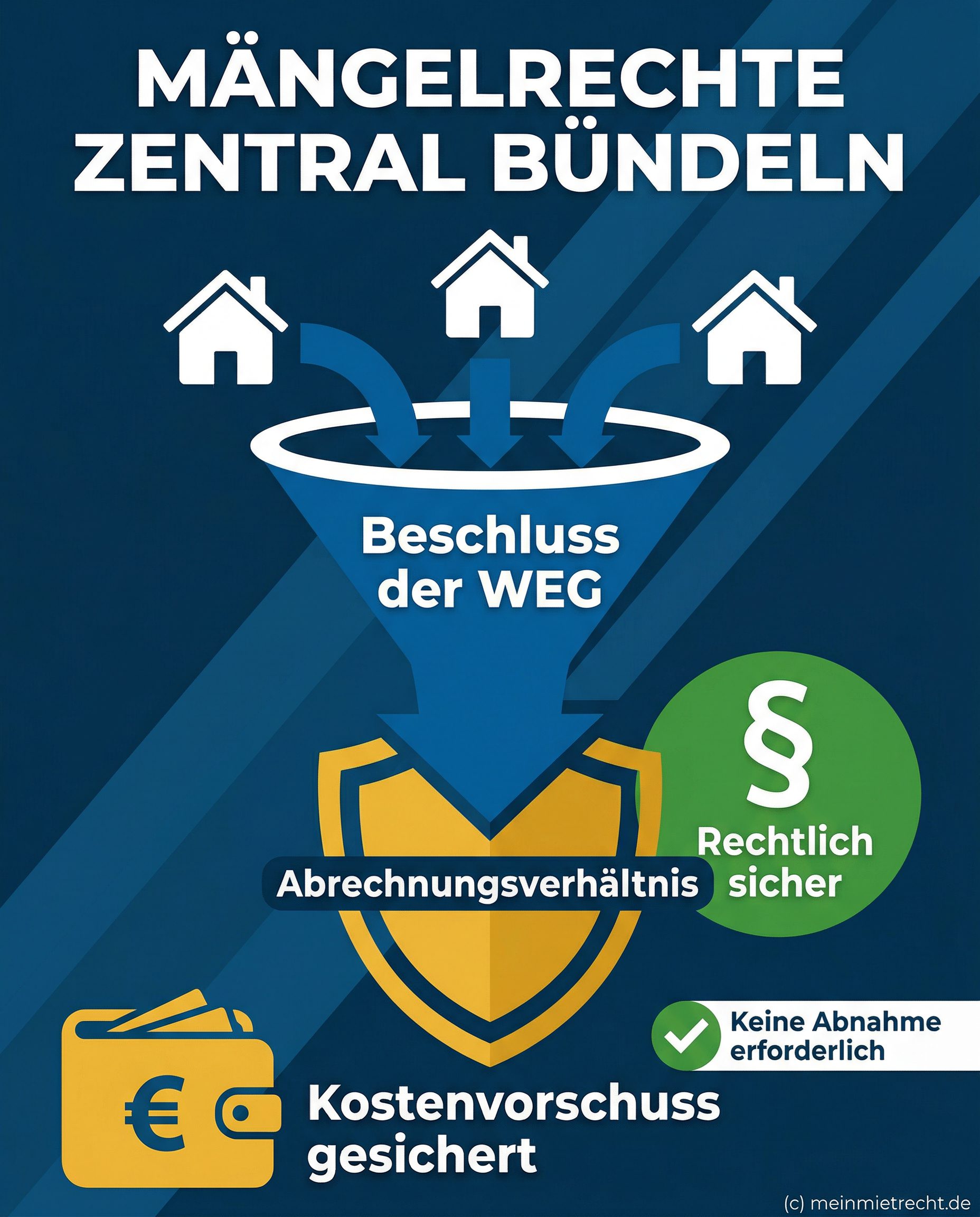 Wie die WEG Mängelrechte zentral bündelt und Kostenvorschüsse ohne Abnahme sichert.